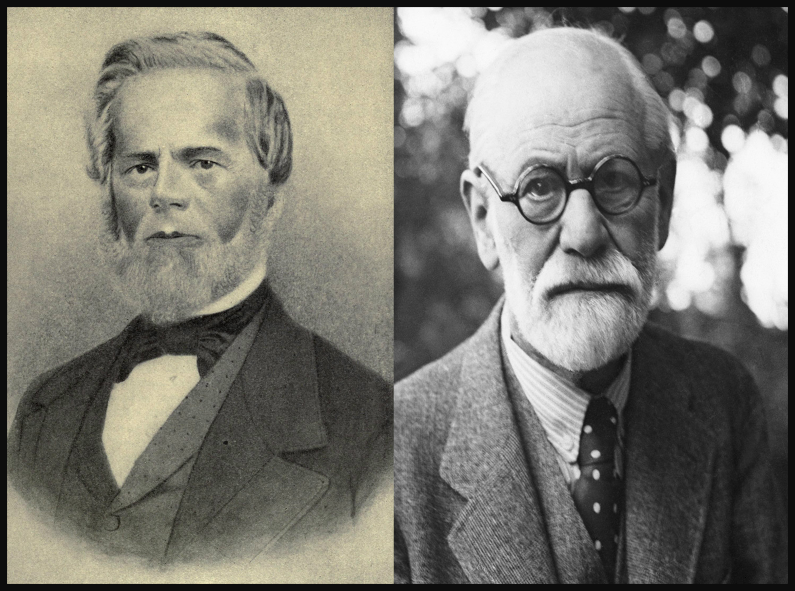 Now, consider the pictures to the left. Chances are you recognize one and not the other. Of course, one is strongly connected to the origins of psychotherapy, perhaps best considered the founder. He inspired a generation of followers, with several of his acolytes going on to achieve the same or even greater recognition and fame. The fundamental and revolutionary principle of his work? Many of the problems people struggle with are psychogenic in origin. Talking about them helped.